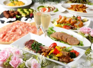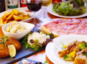 生ハム・フレンチポテト・唐揚げ・ガーリックシュリンプ・合鴨ロース・チーズハンバーグ・味噌串カツ…etc など7種盛り合わせ