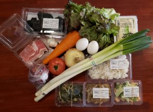 お惣菜・野菜・肉の厳選パック (商品一例:玉ねぎ・人参・キャベツ・キノコ・卵・ポテトサラダ …etc)